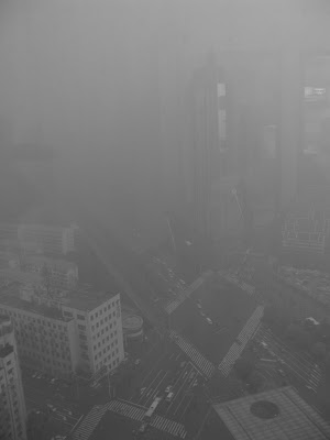 人行天橋上看過去,機動車高架路成弧線延伸連接到站前入口,真是周到啊,想象領導來視察的話,專車一路暢通,門口下車,首先映入眼簾的除了歡迎隊伍,還有華麗的玻璃幕墻和鋼架頂棚,以及對面的綠草坪,感覺真是灰常灰常奧運啊。